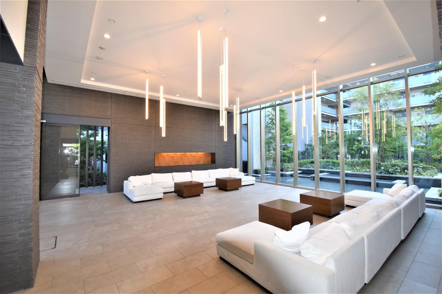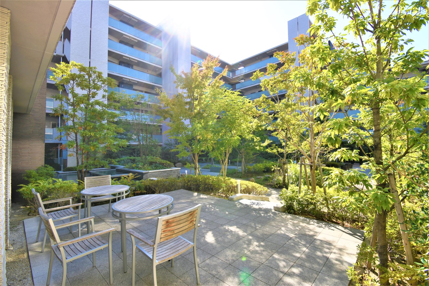 ホテルライクな豪華なエントランスホールやきれいに手入れされた中庭等、